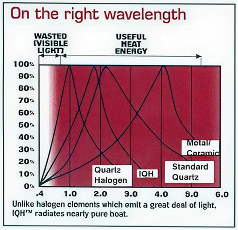 But unlike halogen, which wastes considerable energy as visible light, our medium wavelength quartz heaters emits nearly pure radiant heat. It does the same job as halogen on 25% less energy.